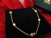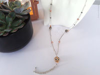 Sautoir Lanterne plaqué rhodium et perles rose or