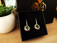 Boucles d'oreilles "Cristal à 4 feuilles- emeraude