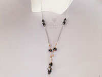 Sautoir Lanterne plaqué rhodium blanc & noir