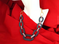 Collier de déclaration "COLOR BLOCK"- noir & rose